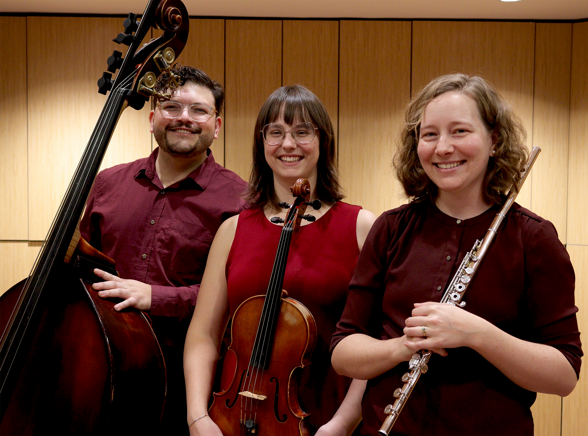 AJA Trio (Amanda Hamilton, Anne Maker, and Jose Saavedra) is a flute, viola, bass trio that met performing Erwin Schulhoff’s Concertino. The trio is dedicated to exploring the existing repertoire and derivative ensembles and in expanding this unique instrumentation’s music. This season’s repertoire includes Schulhoff’s Concertino, Sperger’s Trio in D Major, and Wolff’s Music for 1, 2 or 3 People.